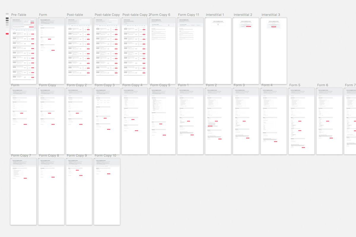 I left the team with a series of recommendations to continue to iterate on and improve both the eligibility checker and overall credit cards product.
